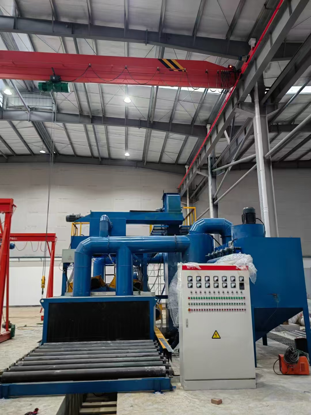 鋼結(jié)構(gòu)輥道通過式拋丸機現(xiàn)場調(diào)試