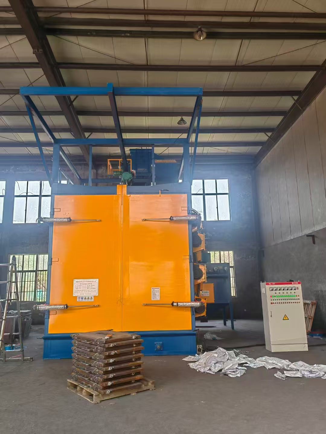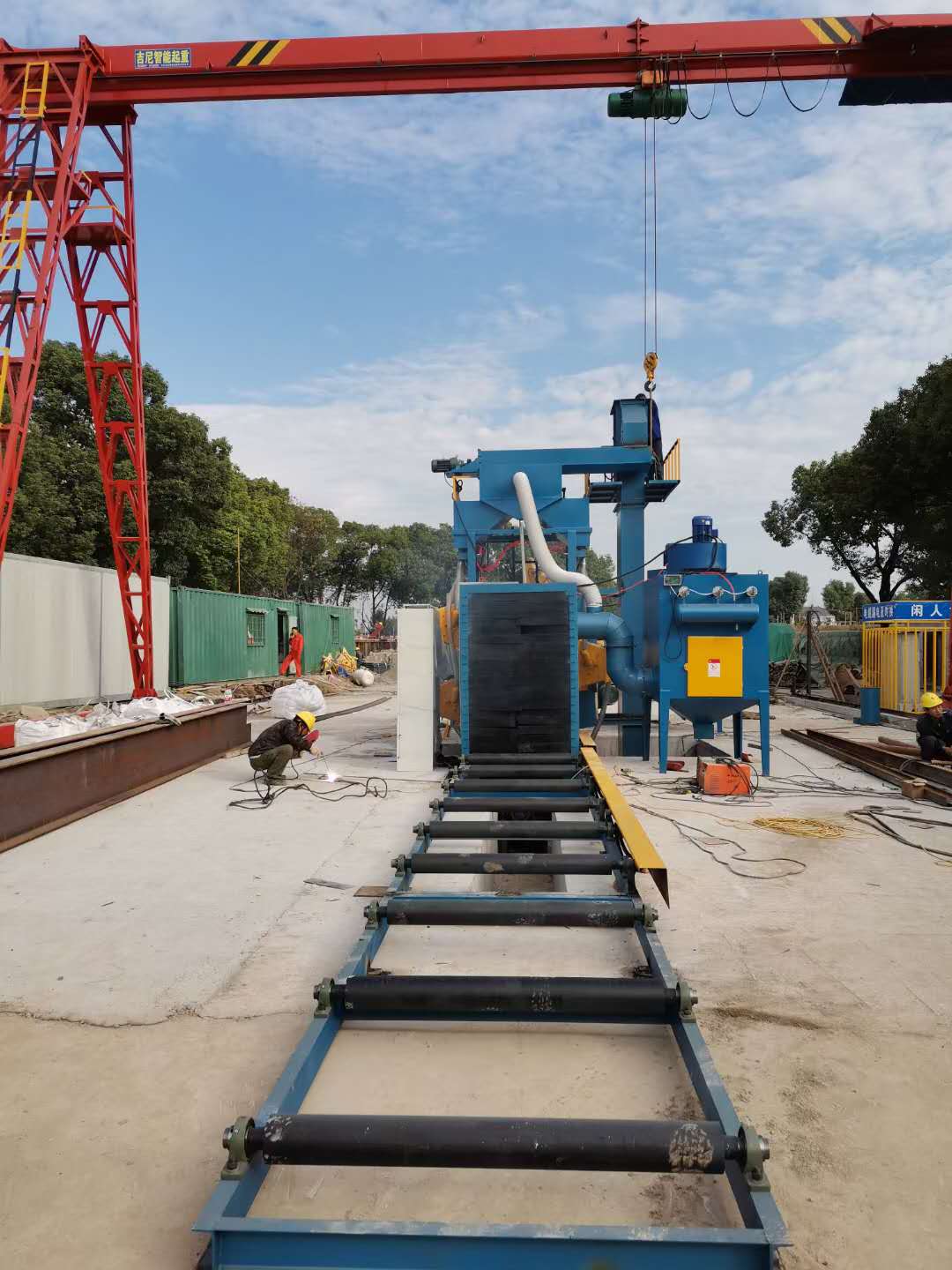 鋼結(jié)構(gòu)輥道通過式拋丸機現(xiàn)場調(diào)試